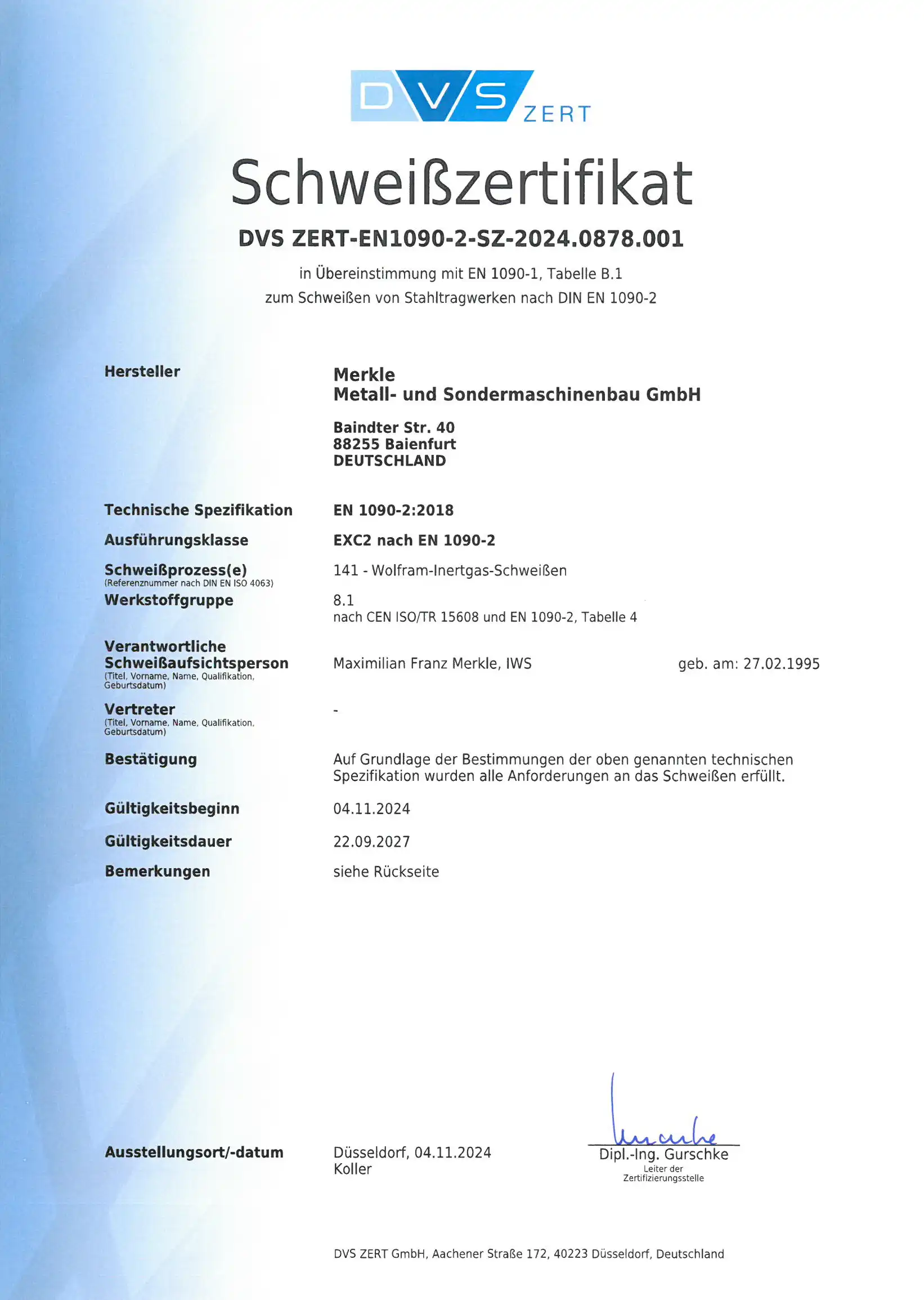 Alleinige Geschäftsführung durch Maximilian Merkle – Mechaniker-Meister und Schweißfachmann
